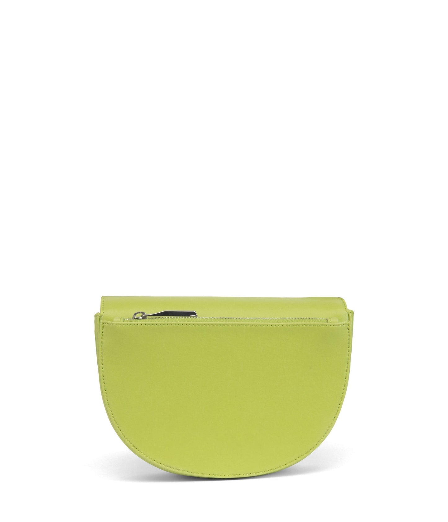 Saddle bag with adjustable strap, flap with magnetic snap closure at main compartment, and a back gusseted zipper compartment.